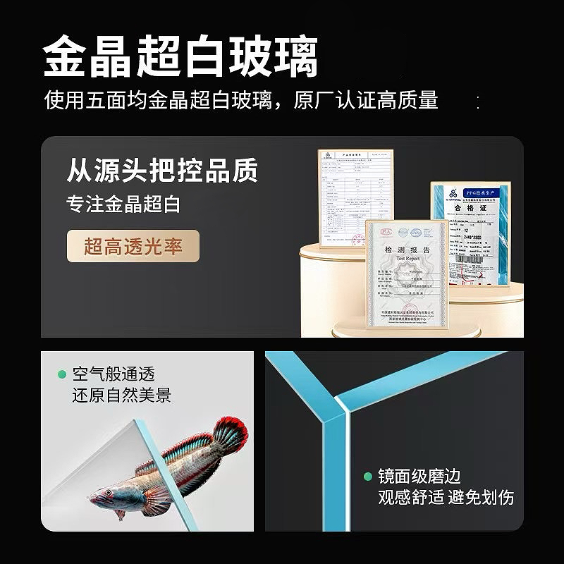 天新款超白鱼缸桌面客厅生态斗金鱼乌龟缸造景小型水草养鱼玻璃裸缸