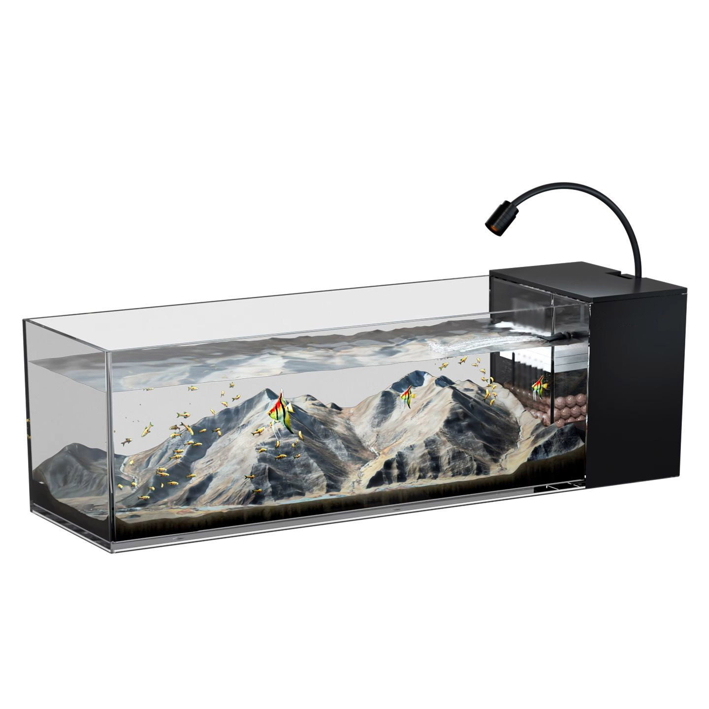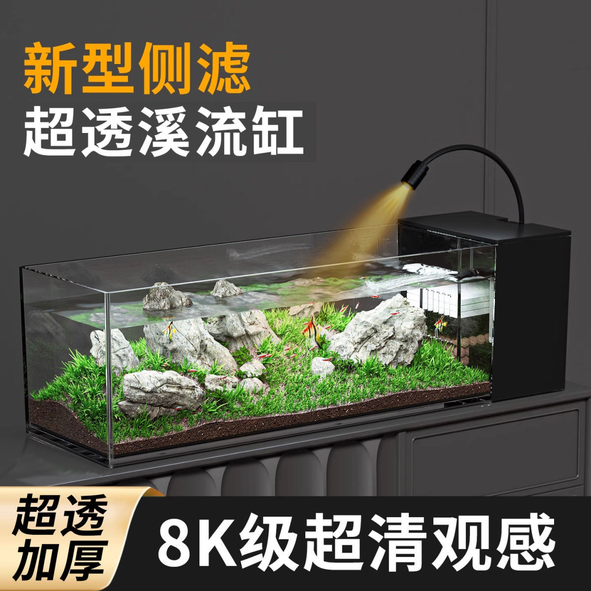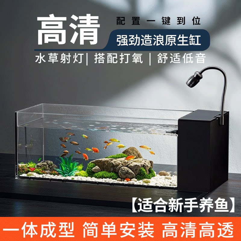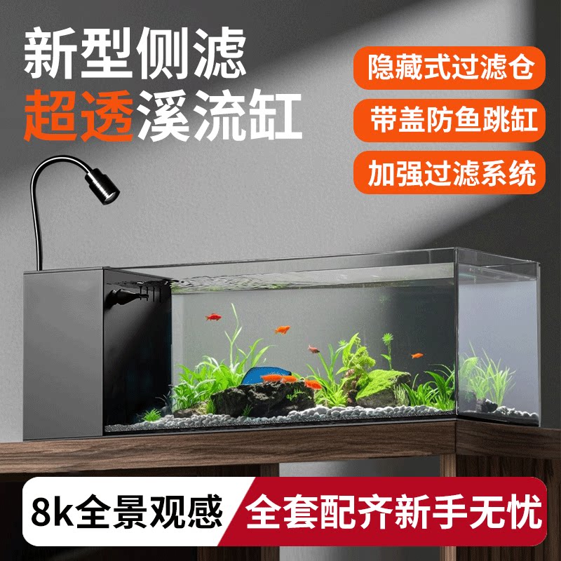 淘宝超透耐摔亚克力溪流缸桌面全套侧滤鱼缸小型自循环造景生态小鱼缸