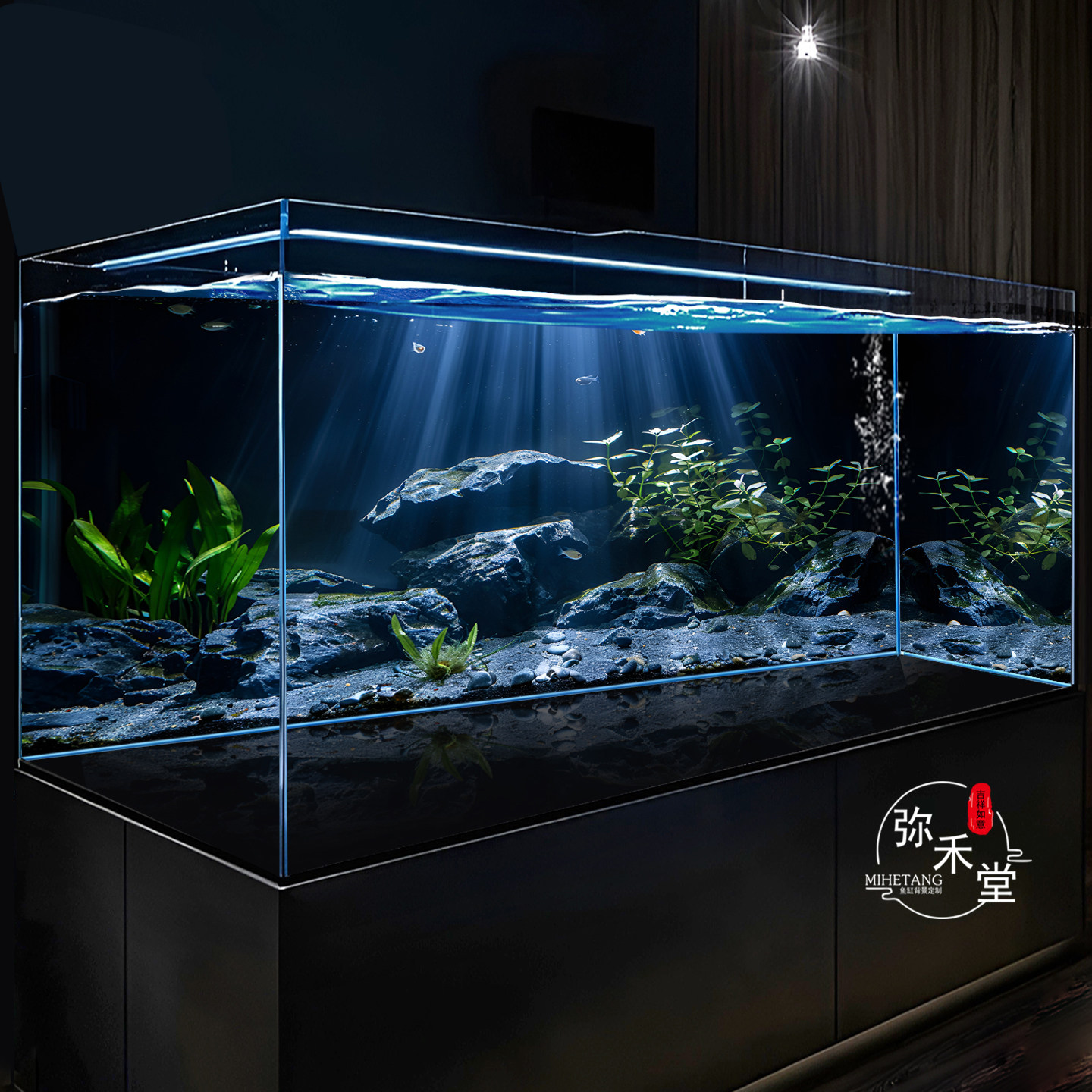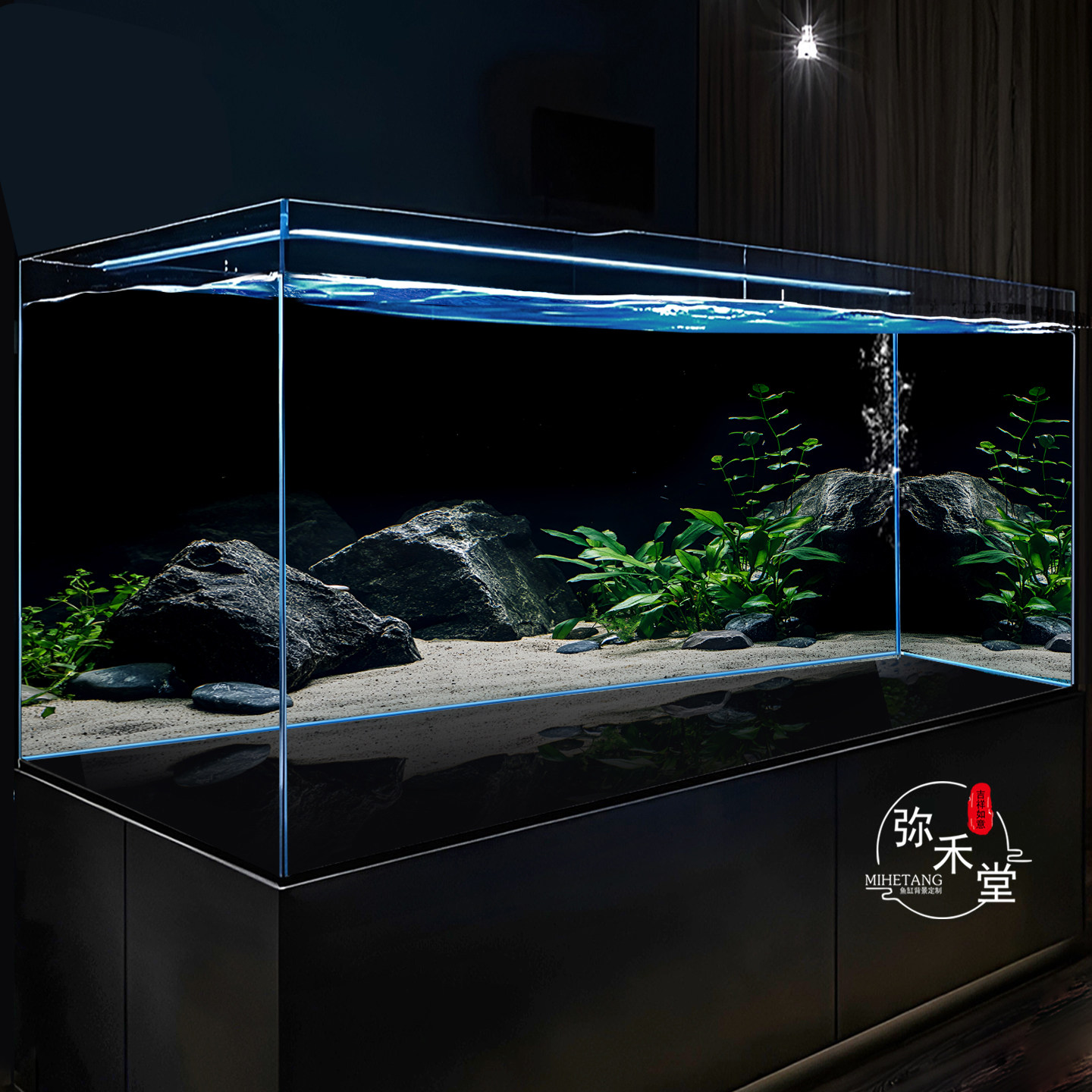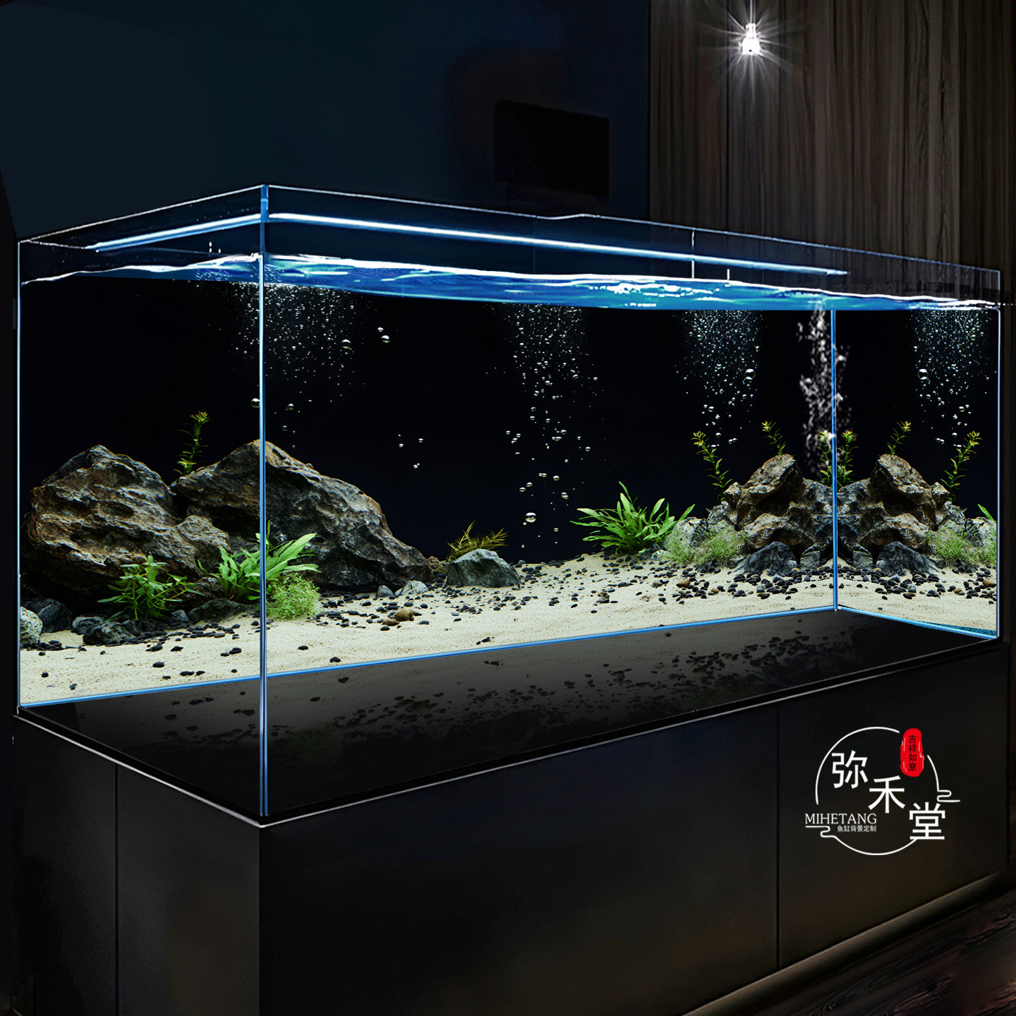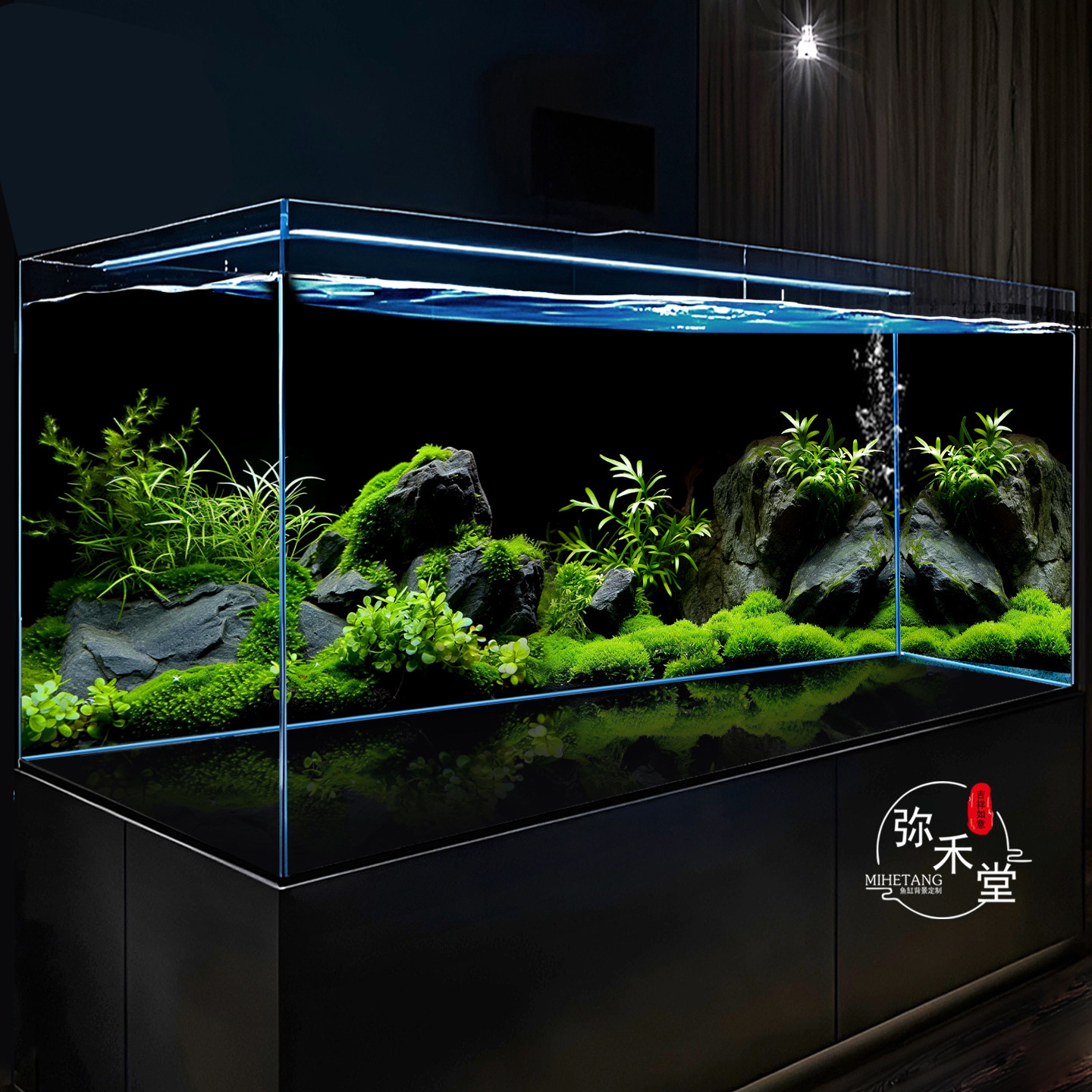 淘宝弥禾堂鱼缸背景画高清贴纸5D立体定制龙鱼缸超白缸溪流缸水草壁纸