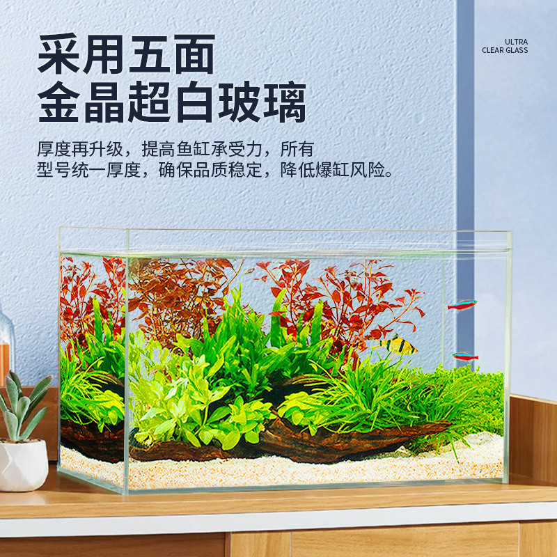 天新款超白鱼缸桌面客厅生态斗金鱼乌龟缸造景小型水草养鱼玻璃裸缸