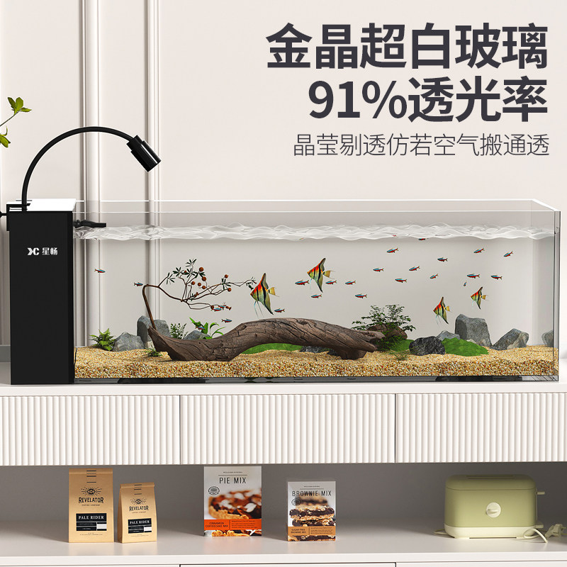 鱼缸新款超白生态玻璃缸家用客厅办公室小型大桌面底部排水养金鱼