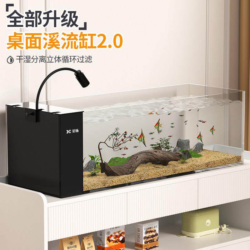 淘宝星畅2025新款鱼缸溪流缸底滤一体式客厅金晶超白侧滤小型玻璃造景