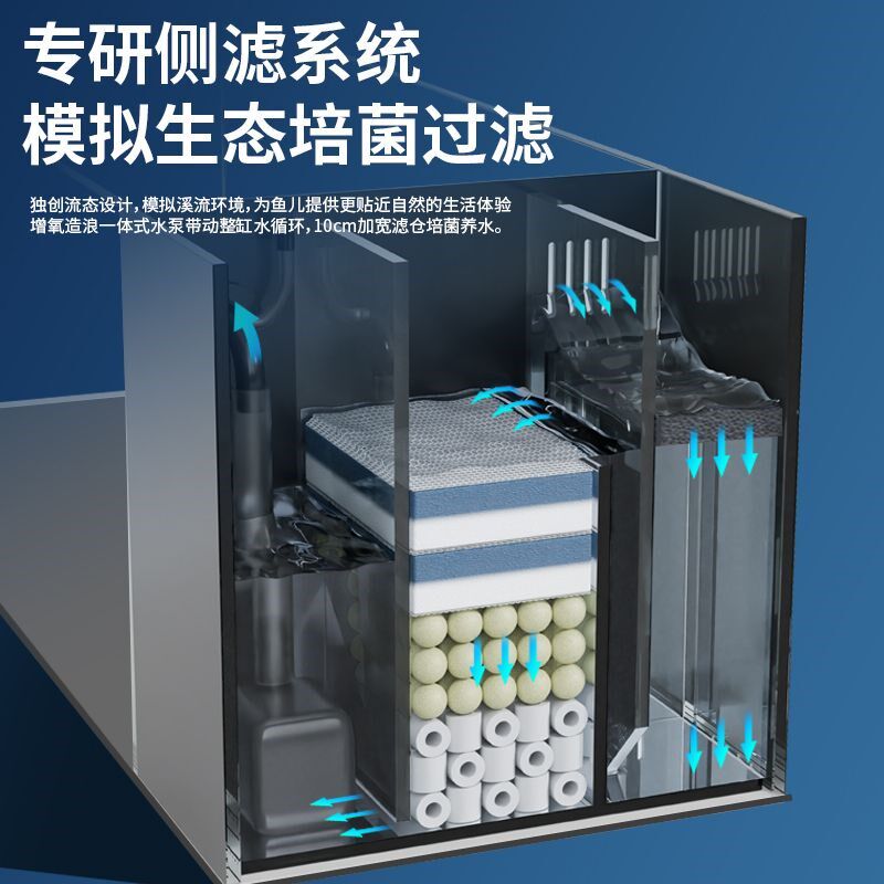 嘉赤侧过滤制氧一体式机自循环家用客厅桌面溪流超白玻璃懒人鱼缸