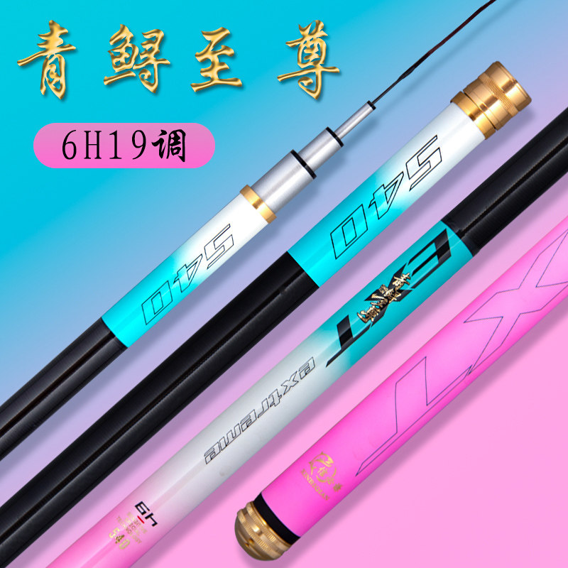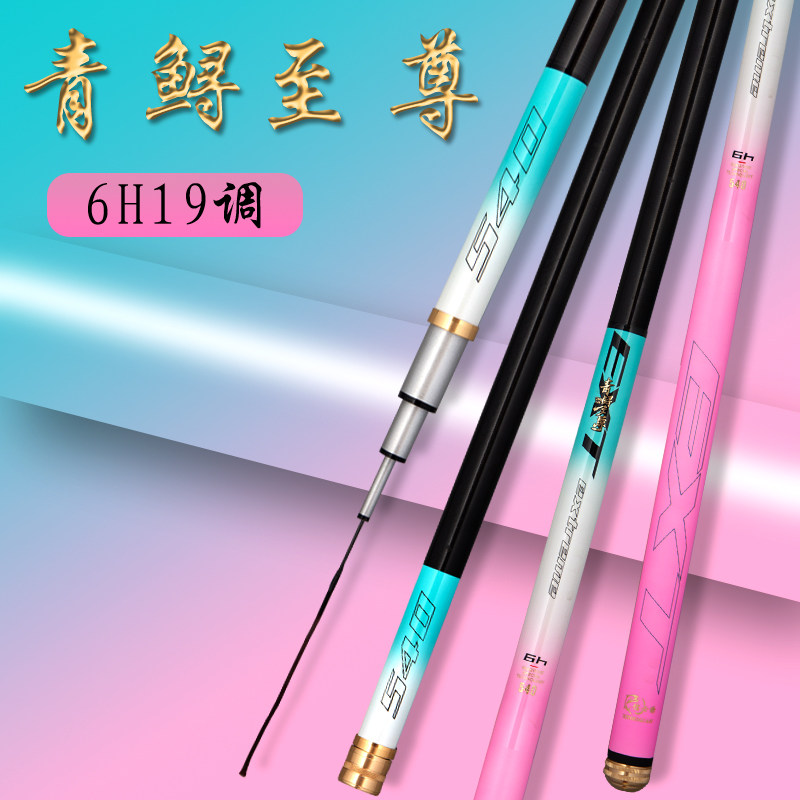 天猫正品青鲟至尊钓鱼竿冰蓝粉台钓竿6H19调性高碳鲤鱼竿鲫鱼竿偷驴竿