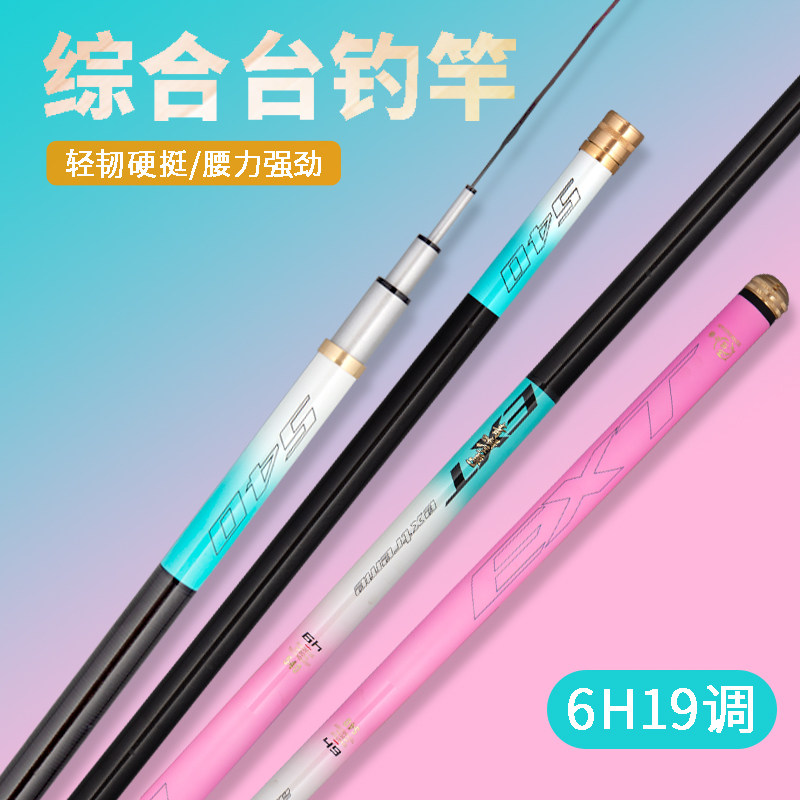 冰蓝粉钓鱼竿手竿超轻超硬19调鱼杆碳素台钓竿手杆大物竿渔具套装