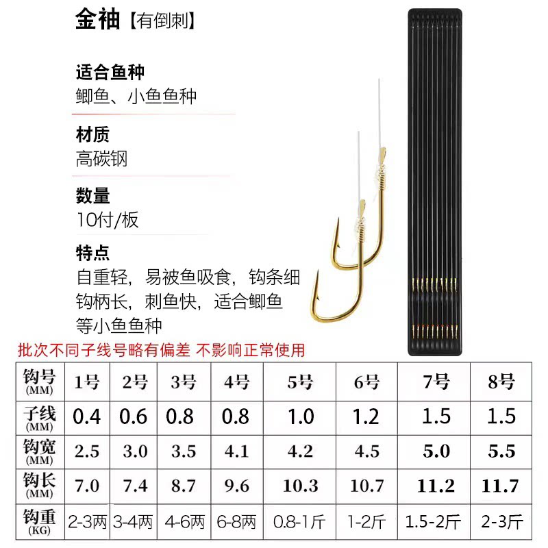 环盛细地袖日本进口袖钩竞技鲫鱼钩细条平打金袖鱼钩黑袖钓鱼钩