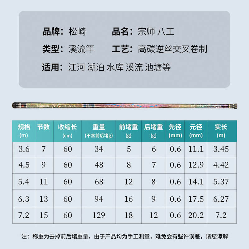 天猫松崎宗师鱼竿超轻超硬碳素短节鱼杆溪流竿手竿5.4米6.3短节小物杆