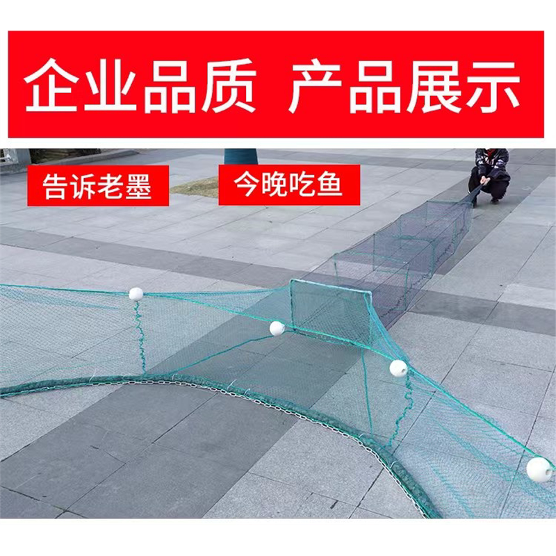 淘宝拦鱼渔网八字网拖网笼捕鱼笼折叠网河道网笼拦鱼塘虎口网鱼网拉网