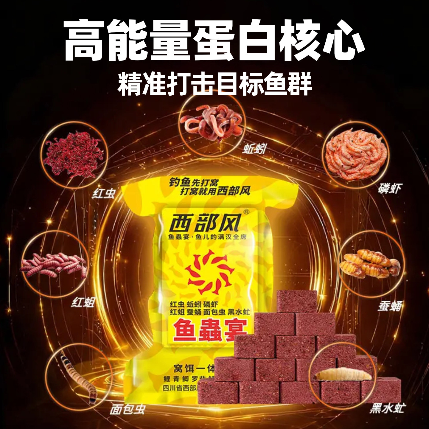 淘宝西部风鱼蟲宴方块饵打窝料维它米昆虫蛋白野钓河流鲫鲤户外垂钓鱼