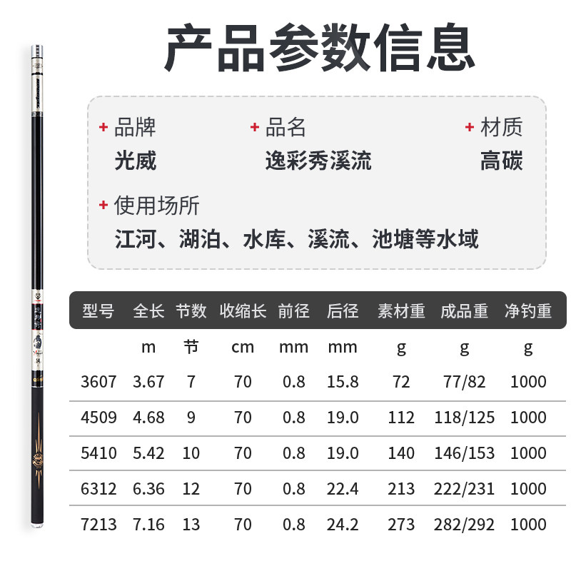 天猫光威鱼竿逸彩秀短节便携碳素杆溪流竿鲫鱼竿鲤鱼综合竿手竿钓鱼竿