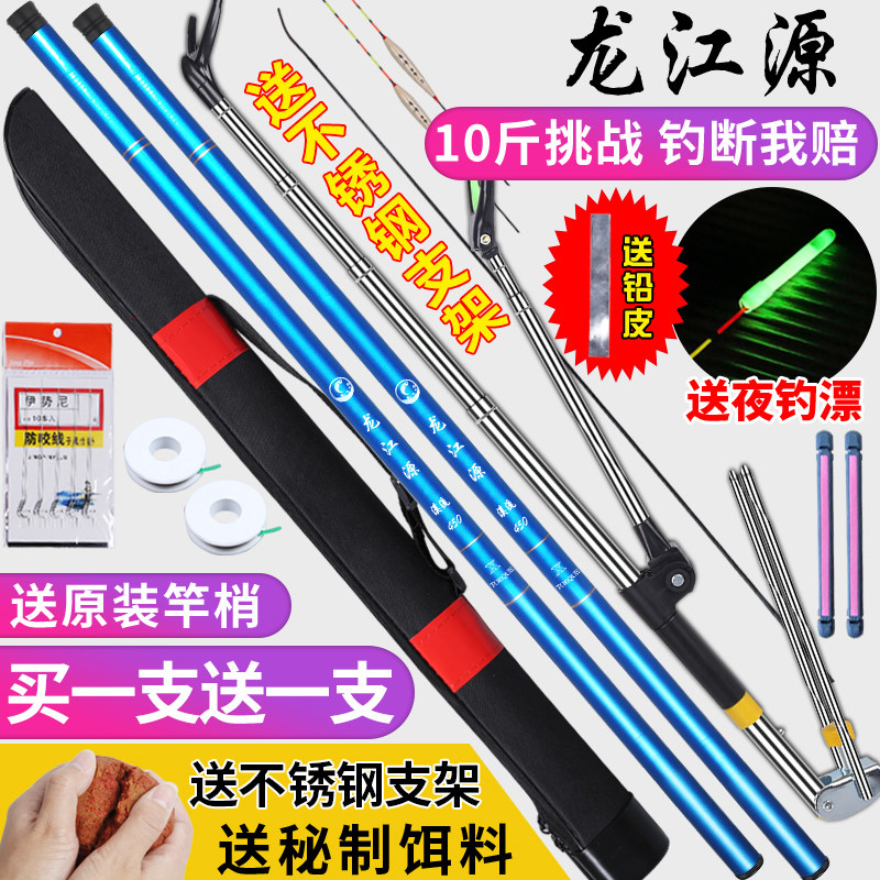 冰蓝粉钓鱼竿手竿超轻超硬19调鱼杆碳素台钓竿手杆大物竿渔具套装