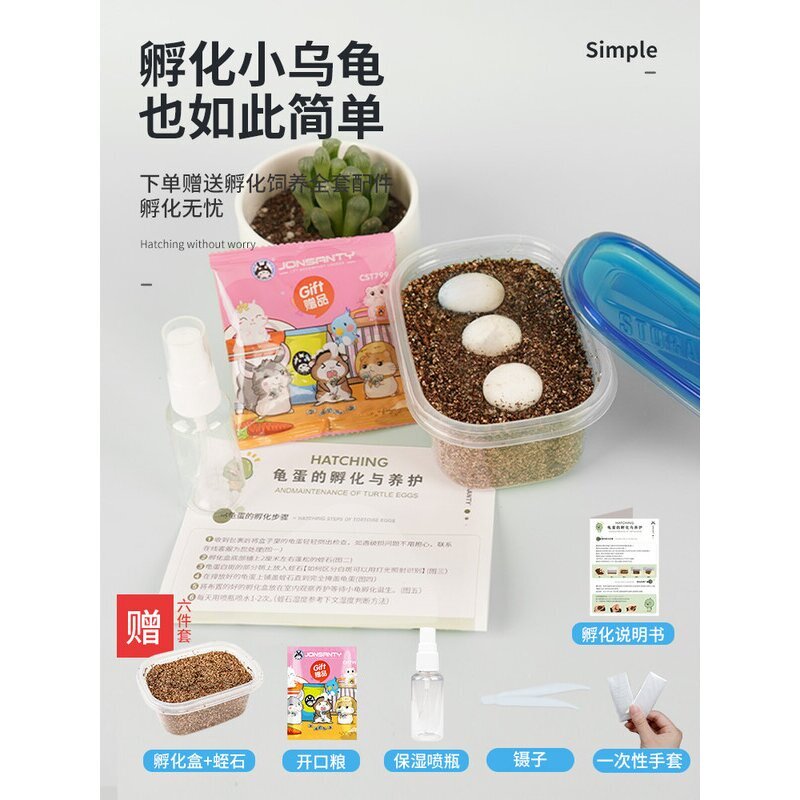 宠尚天乌龟蛋可孵化套装是一款专为儿童设计的趣味科普宠物产品,内含优质受精龟蛋(多为草龟或巴西龟品种),搭配专业孵化盒、温湿度计及详细说明书,让孩子在家即可体验生命诞生的奇妙过程。套装操作简单,安全卫生,孵化成功率高,孵化出的小龟活泼健康,适合家庭饲养。该产品兼具教育性与趣味性,不仅能培养孩子责任心与观察力,还能激发对自然科学的兴趣,深受家长和孩子喜爱,是近年来热门的网红儿童宠物启蒙套装。注意:购买时请确认当地法规,合法饲养,科学护生。