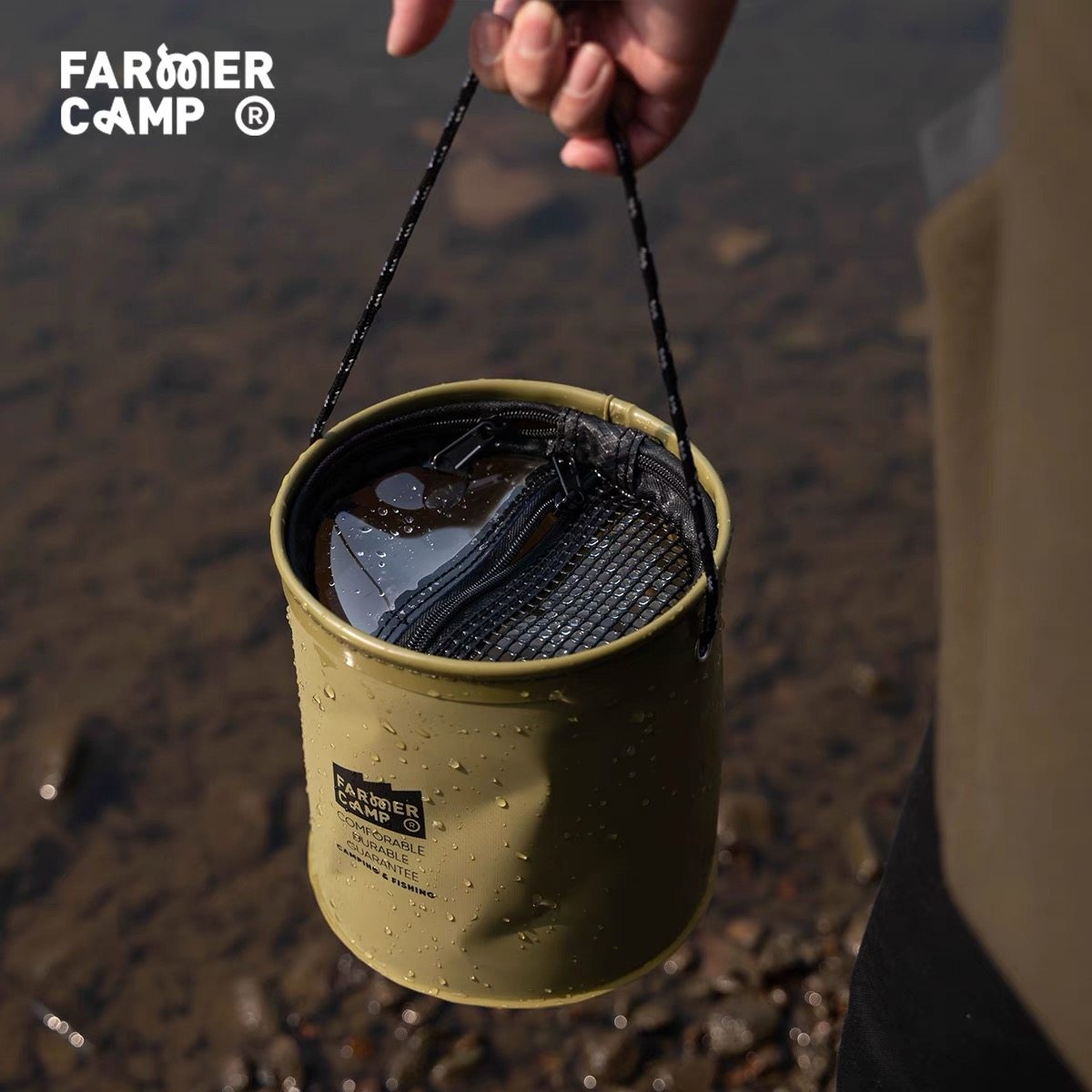 FarmerCamp钓鱼水桶是一款专为户外垂钓爱好者设计的多功能便携水桶,适用于野钓、路亚、小物钓等多种场景。采用高强度环保PP材质,轻便耐用,抗摔抗老化,底部加厚设计增强稳定性。桶身设有提手和挂扣,方便携带与固定,部分款式配备可拆卸隔层,便于分类存放鱼获、饵料或小配件。密封性良好,既可装水养鱼,也能作为打水桶使用,一桶多用。容量适中(常见8-12L),不占空间,是露营、溪流钓、湖库野钓的理想伴侣。FarmerCamp注重实用与细节,让每一次垂钓更轻松高效。