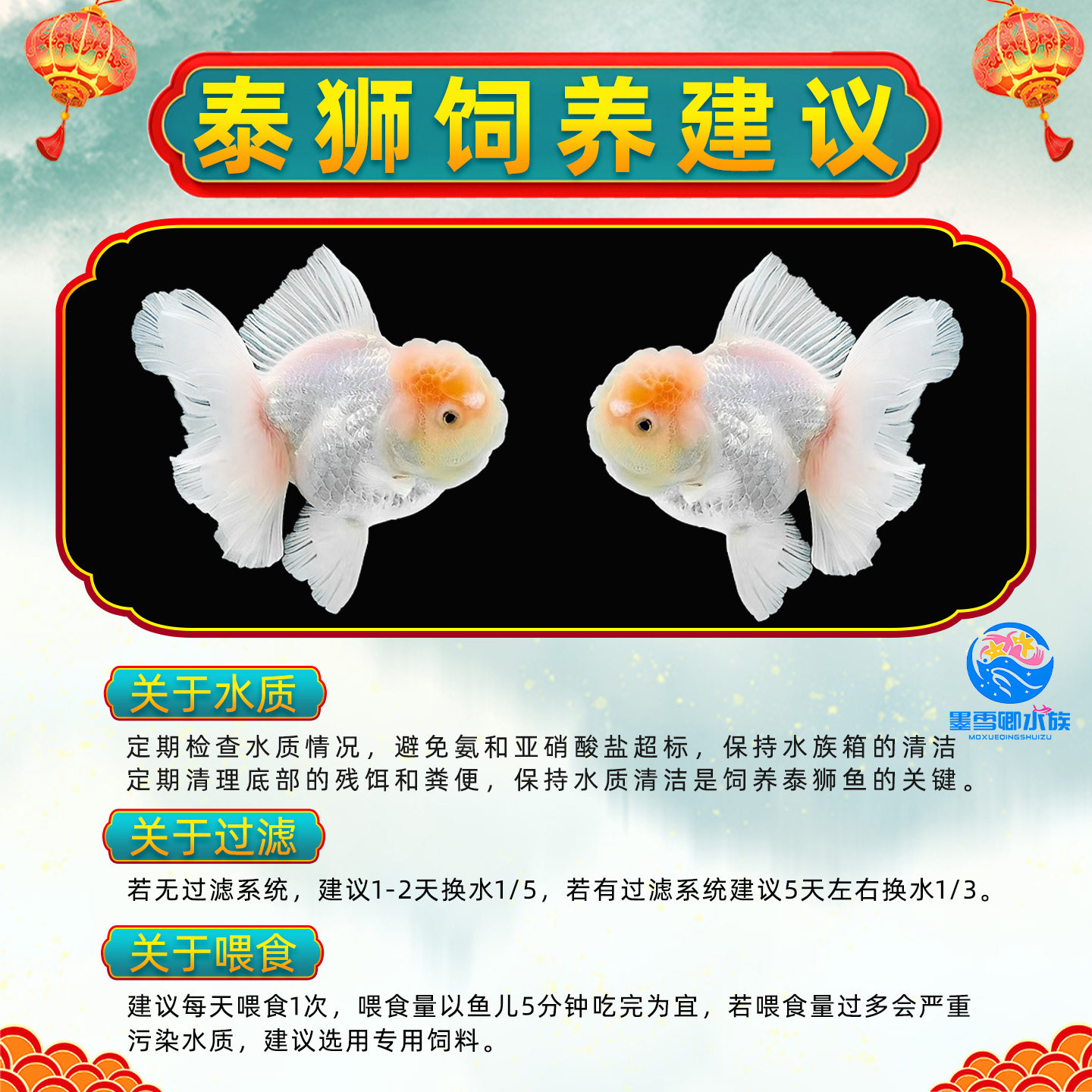 泰狮金鱼是一种体型小巧、体态优美的小型淡水观赏鱼,属于冷水鱼种,非常适合家庭水族箱或庭院鱼池饲养。它对水质适应性强,能耐受较宽的水温范围(10℃–28℃),用晾晒后的自来水即可养殖,无需频繁换水,饲养难度低,特别适合新手。泰狮游姿优雅,头瘤发达,尾鳍飘逸,色彩丰富,观赏价值高。其生命力顽强,抗病力强,耐活易养,即使鱼苗阶段也较易成活。日常投喂专用鱼粮或红虫即可,管理简单。无论是单独饲养还是搭配其他温和品种,泰狮都能为居室增添灵动生机,是理想的小型冷水观赏鱼。