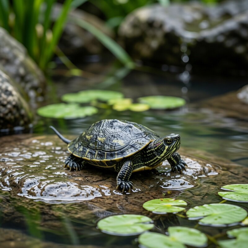 中华花龟,又称珍珠龟、六线草龟,是一种深受喜爱的国产观赏水龟。其背甲呈棕褐色,带有明显的六条纵向浅色条纹,幼体尤为鲜明,因而得名“六线草龟”。性情温和,适应力强,适合新手饲养。作为半水栖龟类,需提供水域与晒台,搭配清洁水质与适量光照,有助于其健康成长。中华花龟寿命较长,有“长寿龟”之美誉,寓意吉祥。因其外形清秀、互动性好,常被作为宠物龟饲养,也广泛用于生态缸造景。购买时请选择健康活泼的龟苗,并注意合法合规,支持人工繁育个体,保护野生资源。