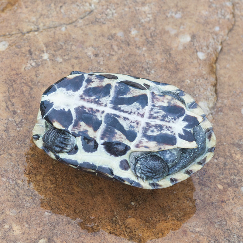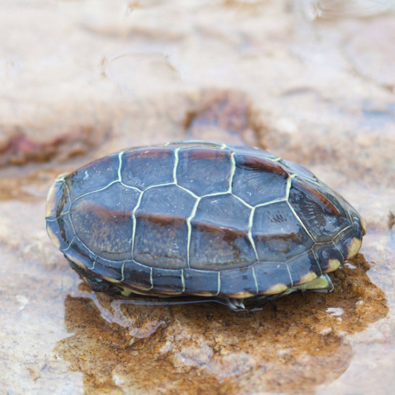 中华草龟,又称金线龟、大草龟,是我国常见的本土水龟品种,性情温顺,适应力强,非常适合家庭饲养。幼龟背部呈棕褐色,腹甲具黑色斑纹,部分个体背甲中央可见金色纵纹,故得名“金线龟”。它们喜静,杂食性,可喂食龟粮、小鱼虾、蔬菜等,对水质要求适中,搭配过滤系统更易养护。外塘或室内水族箱均可饲养,冬眠习性明显,是兼具观赏性与互动性的理想宠物龟。相比巴西龟,草龟更耐寒、少病,且为本土物种,生态友好。选购时建议选择活力充沛、眼睛清亮、无腐皮烂甲的健康龟苗,合法合规饲养,避免野外捕捉。
