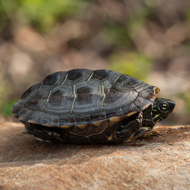 中华草龟,又称苏北金线龟,是一种常见于我国苏北地区的本土水龟,兼具水栖与陆栖习性,适应力强。其背甲呈深褐色或墨绿色,部分个体腹甲具金色放射纹,故称“金线龟”。幼龟阶段活泼好动,成体雄性经多年自然发色可呈现通体墨黑,即“墨龟”,被视为吉祥长寿的象征。外塘养殖环境模拟自然生态,利于龟苗健康生长。作为宠物龟,中华草龟性情温和、饲养简单,适合新手入门。因其兼具观赏价值与文化寓意,近年来成为罕见又受欢迎的活体宠物龟,深受龟友喜爱。