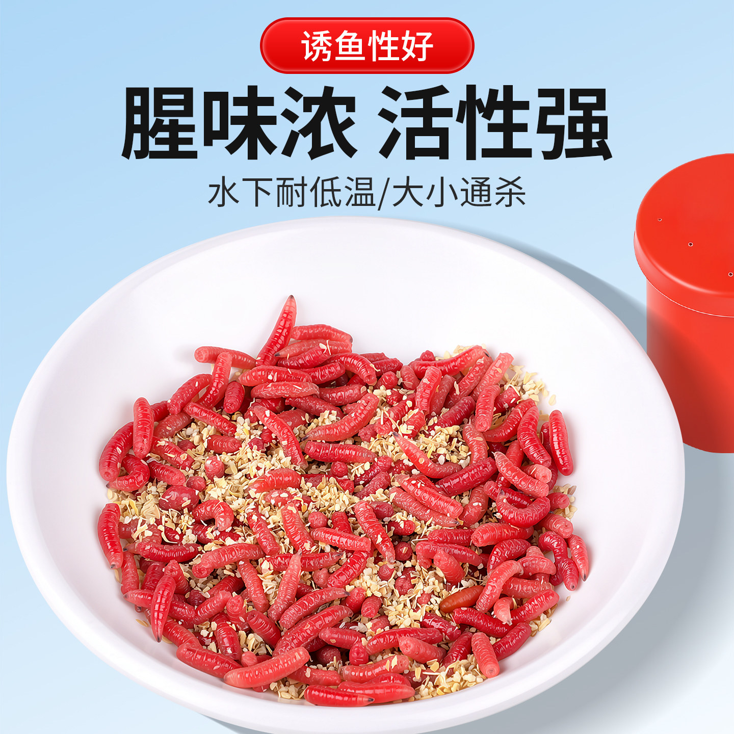 天猫鲜活红蛆虫活饵红虫鱼饵户外野钓鲫鱼饵料溪流马口爆护饵红曲虫