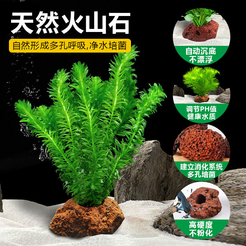 鱼缸水草植物造景净化水质火山制氧水草鱼缸专用懒人装饰新型摆件