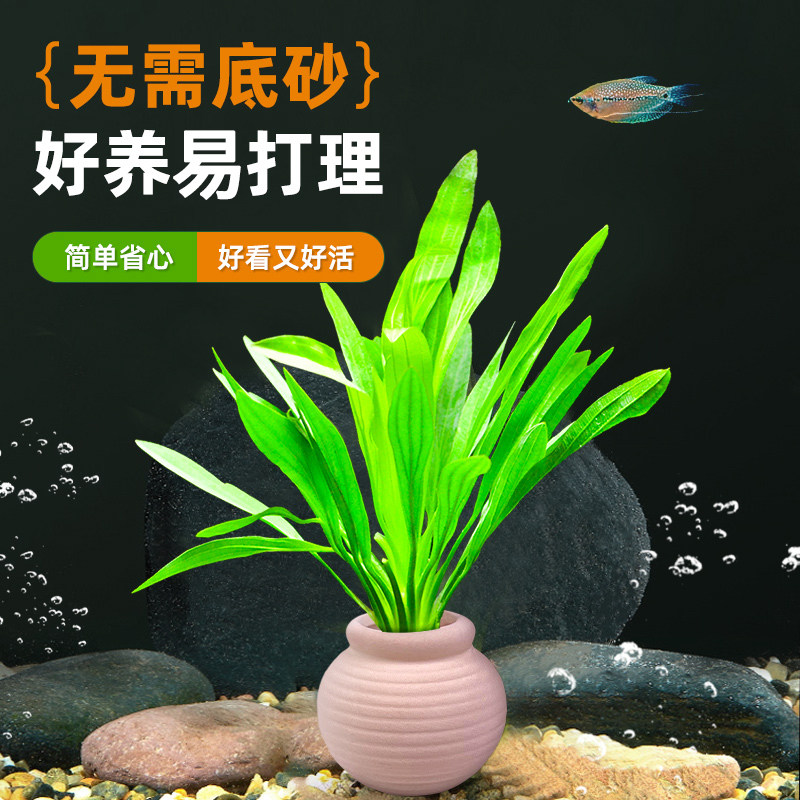 天鱼缸火山石水草植物造景装饰专用真草水培蜈蚣草绿菊净化水质养鱼
