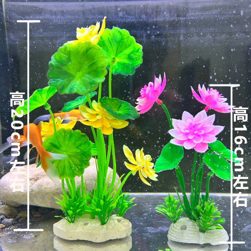 淘宝鱼缸造景装饰品仿真荷花莲花造景装饰品鱼缸摆件粉色荷叶水草