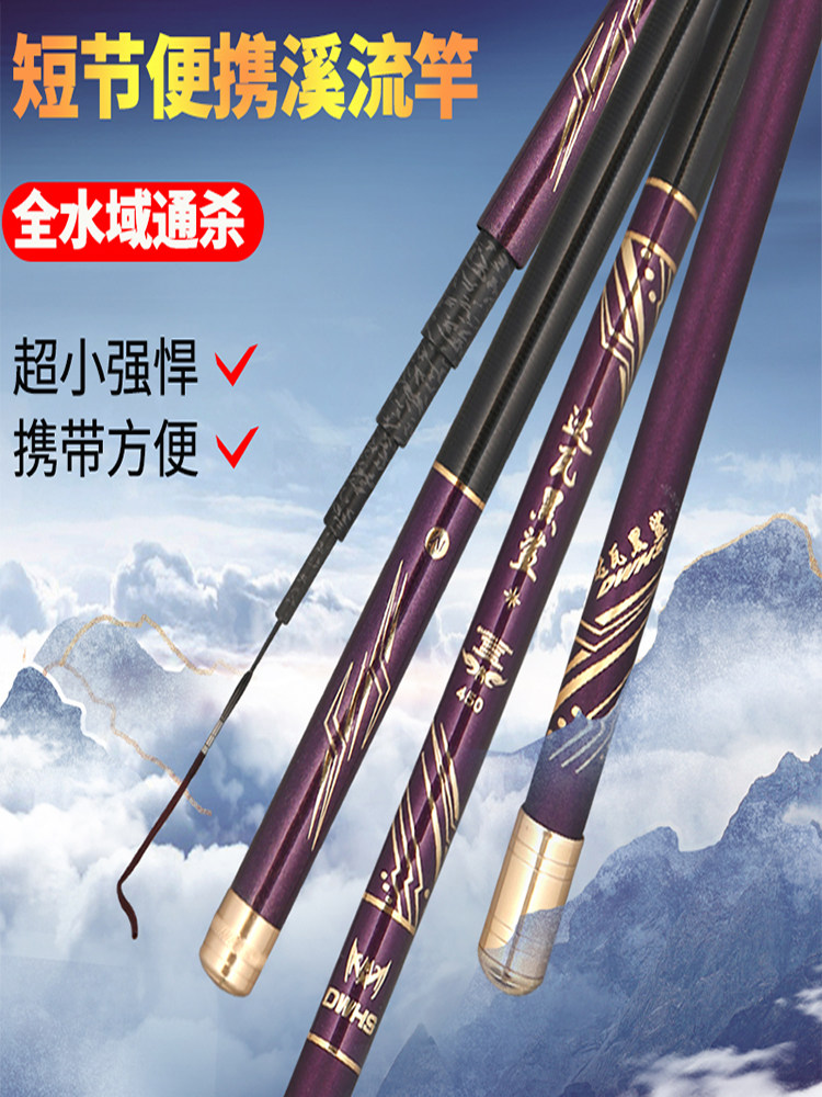 淘新型超短节鱼竿袖珍杆迷你便携手竿28调溪流竿超轻超硬19调钓鱼竿