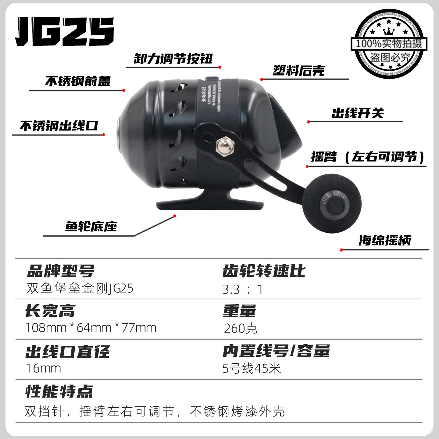 淘宝双鱼堡垒黑金刚鱼轮JG25弹弓射鱼轮套装JG35金属鱼镖轮打鱼鱼线轮