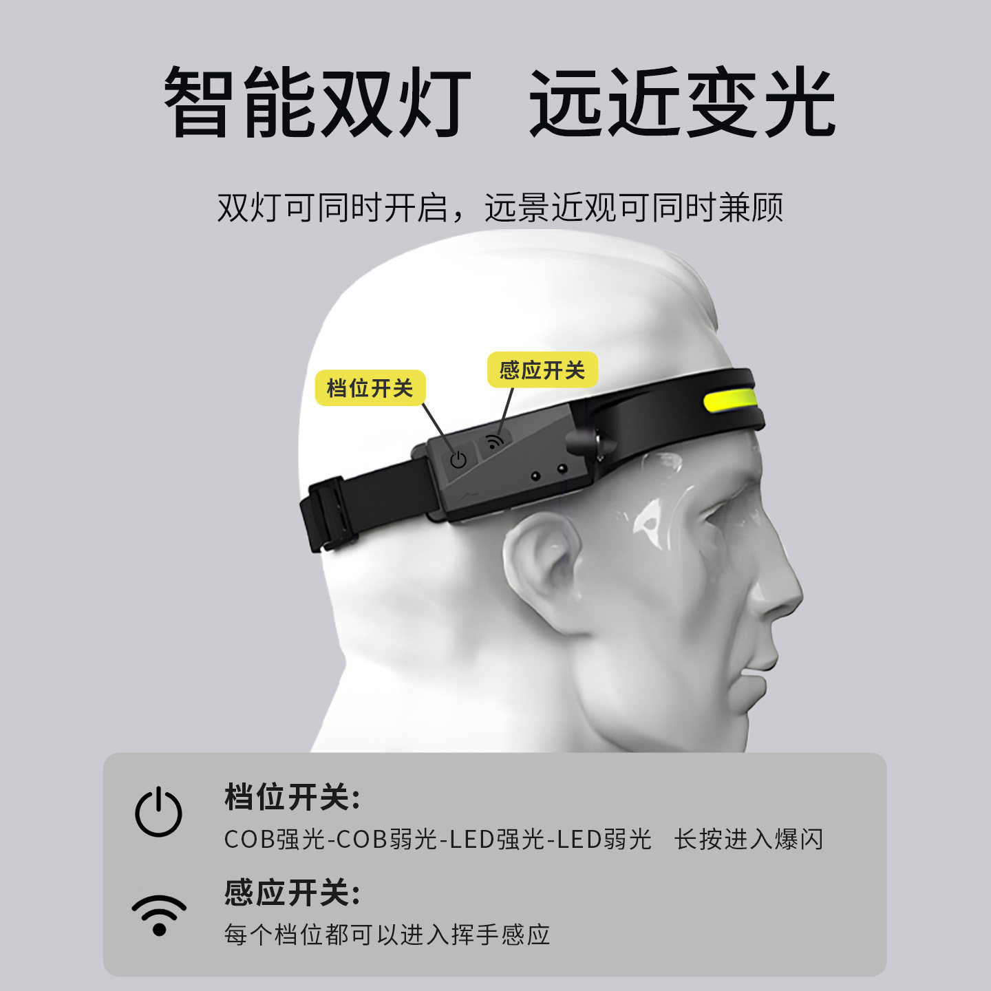 天火头灯是一款专为夜钓、登山等户外活动设计的强光头戴式泛光灯。采用高亮度LED灯珠,光线集中且照射距离远,提供超亮照明,有效提升夜间作业安全性与便利性。内置大容量锂电池,支持超长续航,满足长时间户外使用需求。配备USB充电接口,充电便捷,兼容多种电源。独特的感应功能可实现挥手开关,操作更智能省力。头戴式设计解放双手,佩戴舒适稳固,适合夜钓、露营、徒步等多种场景。防水防摔设计,适应复杂环境,是户外爱好者的理想照明装备。
