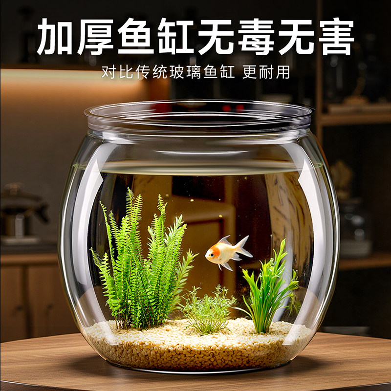 淘宝斗鱼鱼缸家用透明耐摔客厅办公室桌面金鱼水培绿植小型生态造景缸