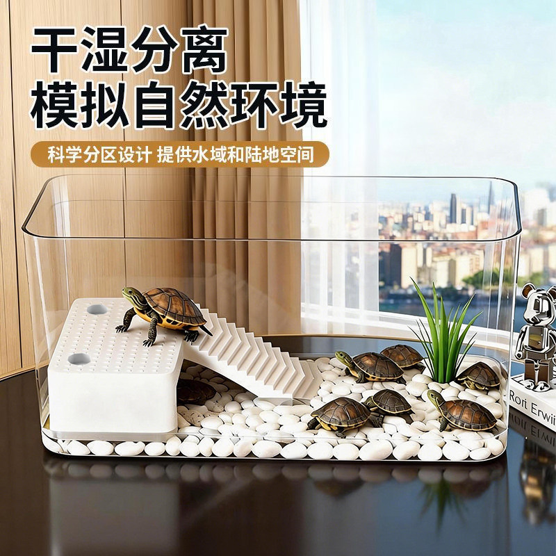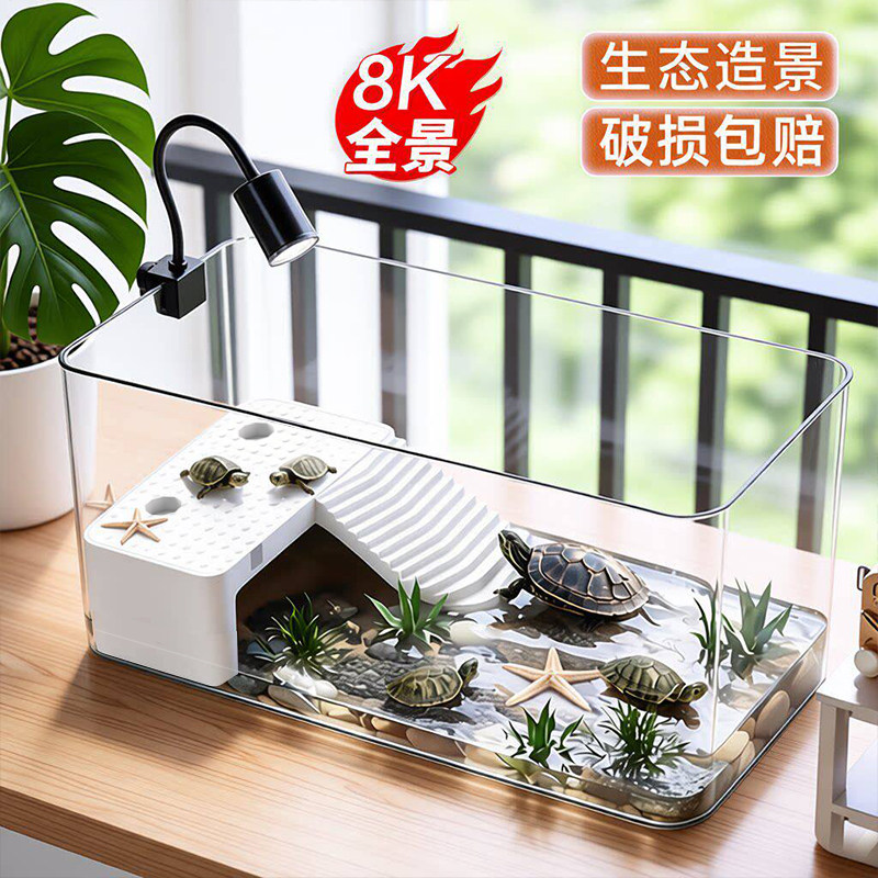 2026新款养乌龟饲养缸水陆两栖生态造景缸家用小型透明桌面金鱼缸
