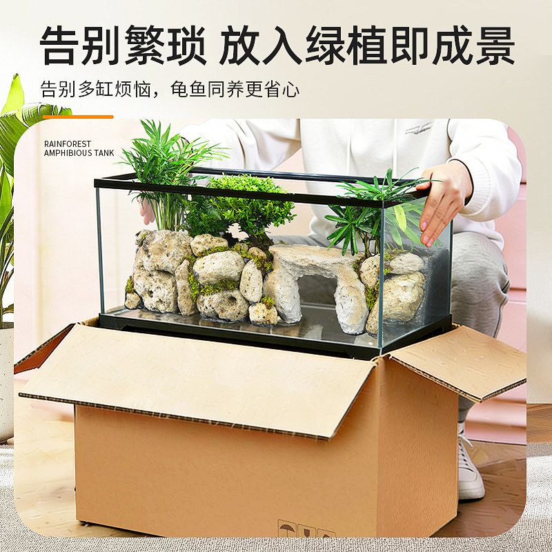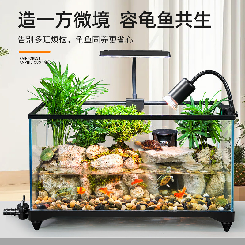 2026新款养乌龟饲养缸水陆两栖生态造景缸家用小型透明桌面金鱼缸