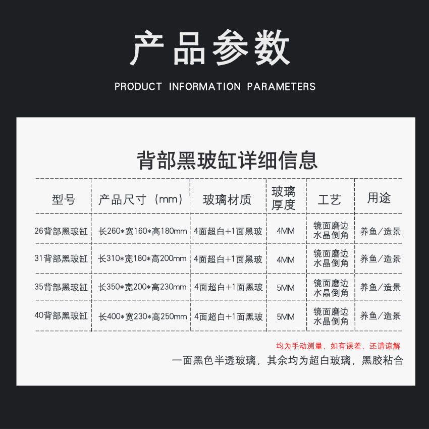 这款黑背鱼缸是一款专为现代家居设计的小型超白玻璃水族箱,采用高品质超白玻璃打造,透光率高,观赏效果极佳。黑色背景设计有效突出水草与鱼类的色彩,营造深邃自然的视觉效果。适用于客厅、书房或办公桌,小巧精致,节省空间。支持水草造景与小型热带鱼混养,搭配过滤、照明系统,可构建稳定的微型生态缸。无需频繁维护,适合新手与资深爱好者。无论是作为家居装饰,还是放松身心的自然角落,这款黑背生态缸都能为您的生活增添一抹灵动与宁静。