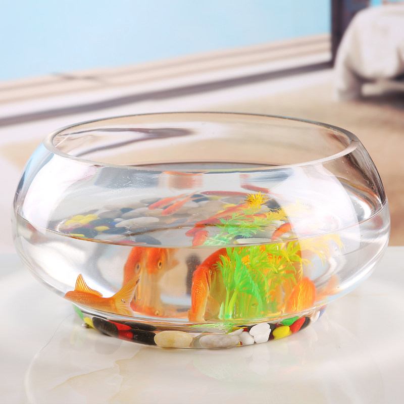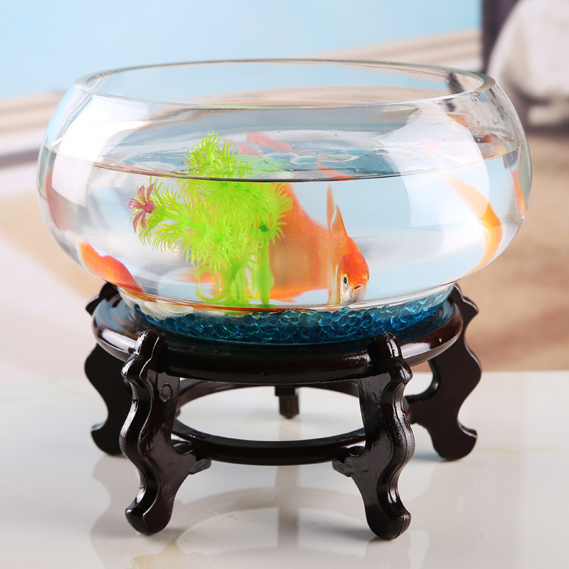 淘办公室小鱼缸加厚透明玻璃乌龟缸客厅家用桌面圆形迷你小型金鱼缸