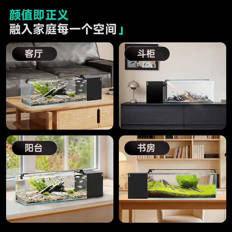 淘嘉赤侧过滤制氧一体式机自循环家用客厅桌面溪流超白玻璃懒人鱼缸