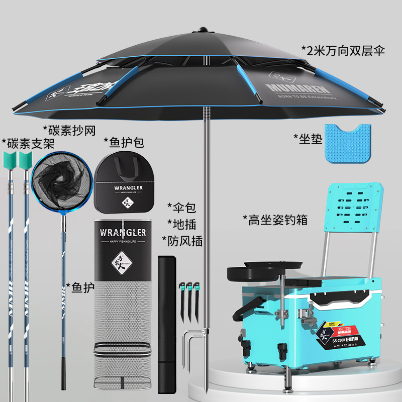 天猫牧马人新款双杆钓箱全套一整套四脚超轻鱼桶多功能可坐加厚钓鱼箱