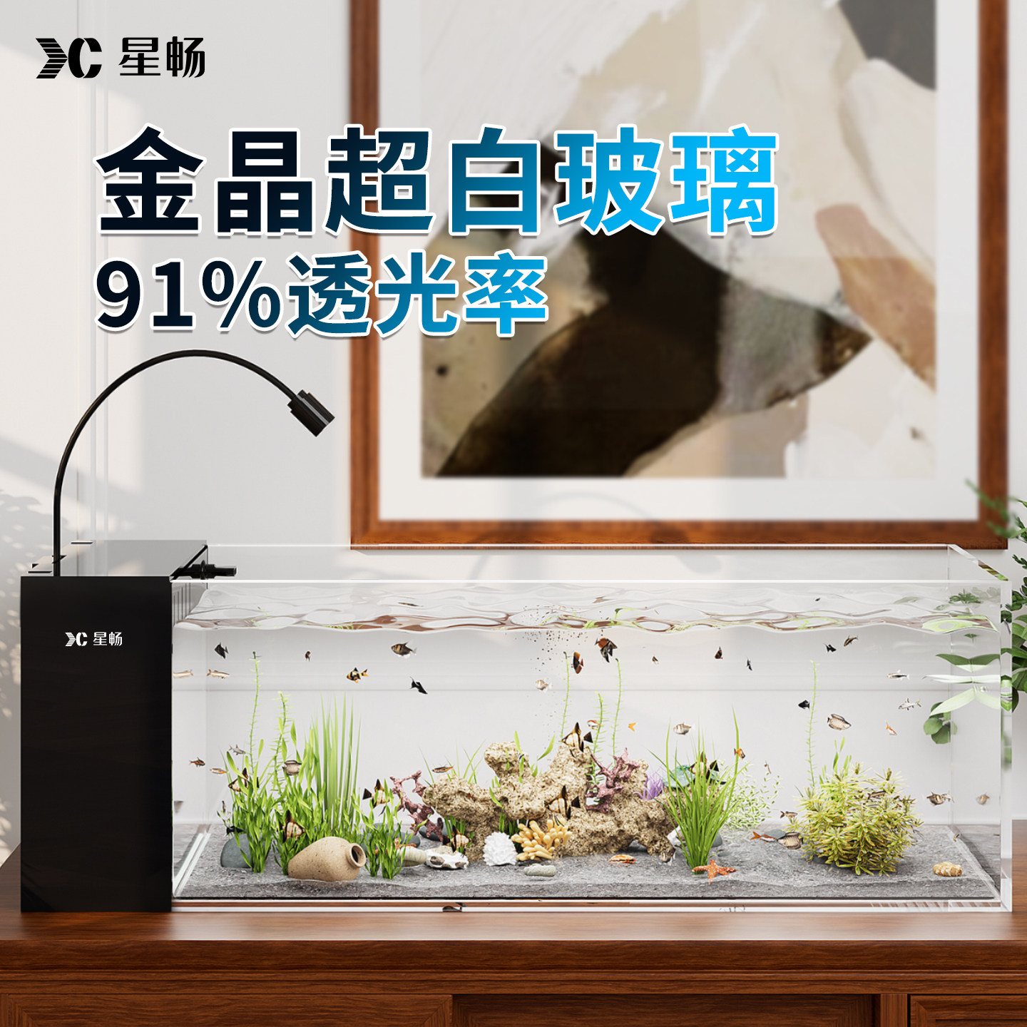 天猫星畅26年新款鱼缸金晶超白玻璃侧滤过滤制氧一体机客厅造景溪流缸