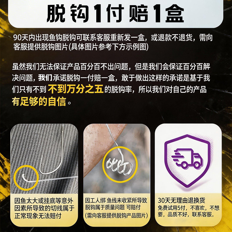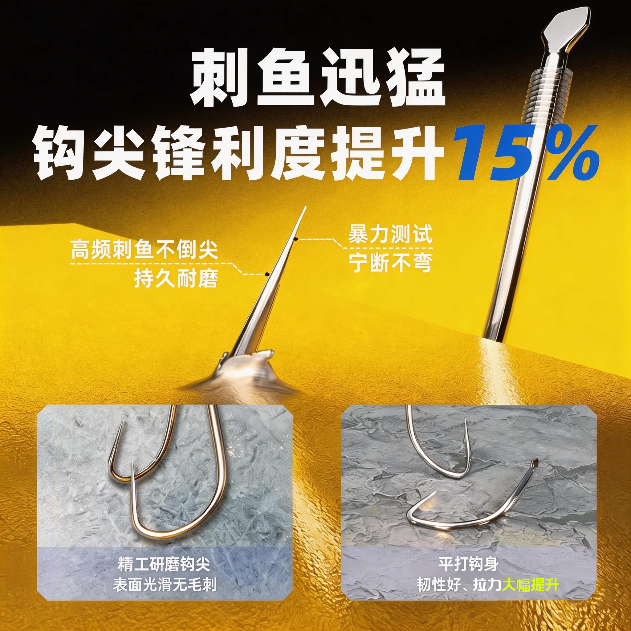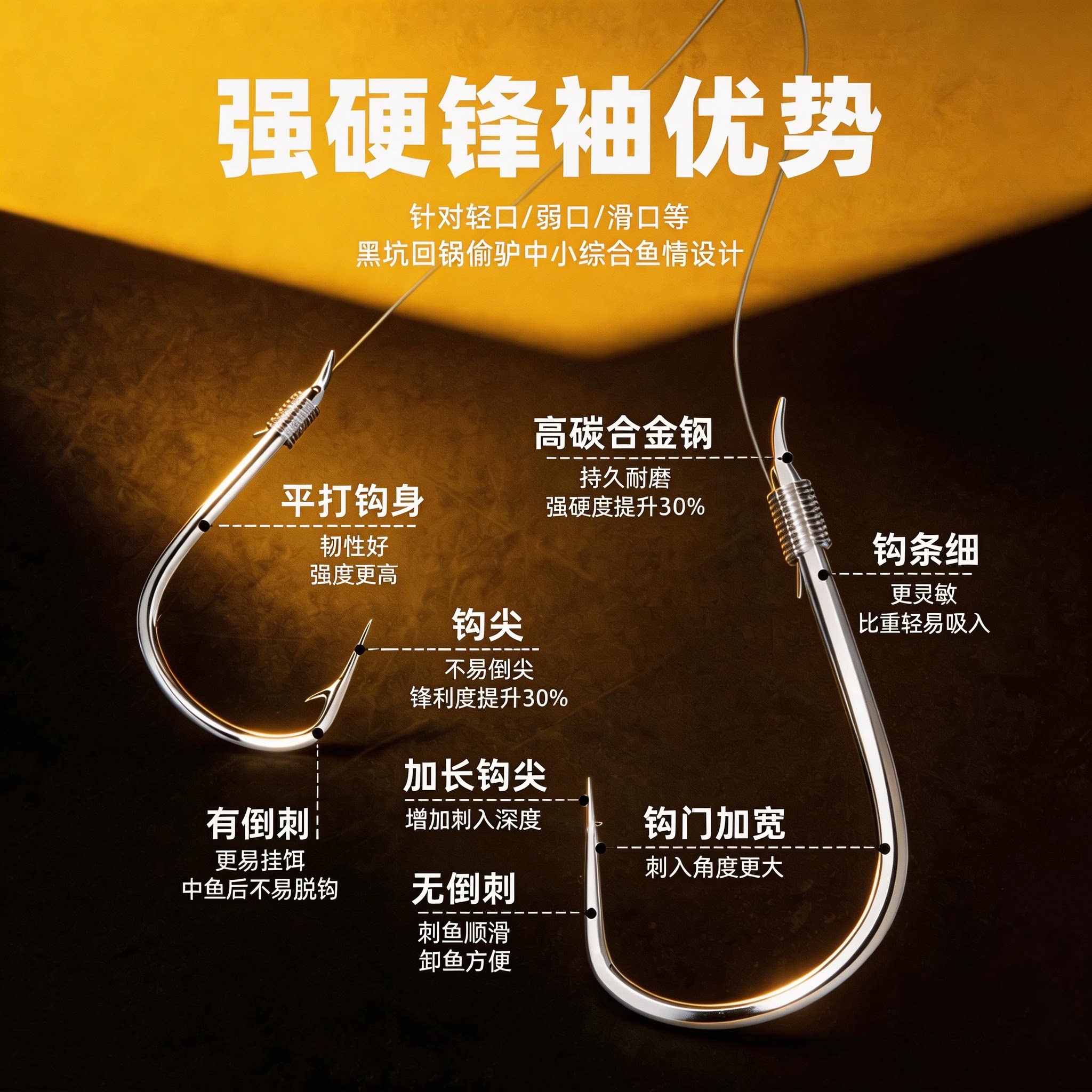 强硬锋袖鱼钩进口鲫鱼袖钩全套,专为竞技垂钓设计,采用高碳钢进口材质,钩尖锋利、穿透力强,抗拉强度高,持久耐用。短子线搭配双钩设计,有效提升中鱼率,减少挂底风险,适合精细作钓鲫鱼等小型鱼种。子线已预先绑制,线结牢固、结节损耗低,即拆即用,节省准备时间。全套包含多种型号,满足不同鱼情需求,线组柔韧顺滑,信号传递清晰。正品保障,品质可靠,是竞技钓手和休闲钓友的理想选择,助您在垂钓中轻松应对复杂环境,提升作钓效率与乐趣。