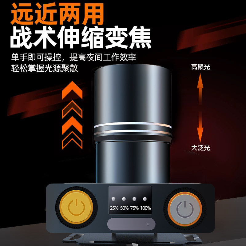 天猫雷蛇头灯2025新款强光超亮变焦头戴式赶海夜钓鱼专用黄光超长续航