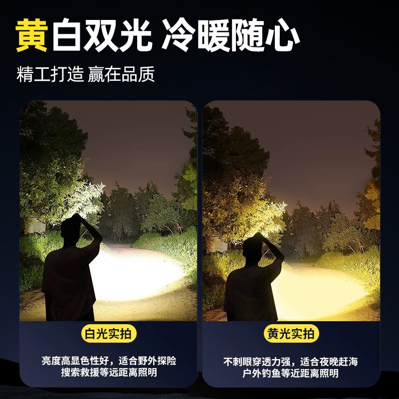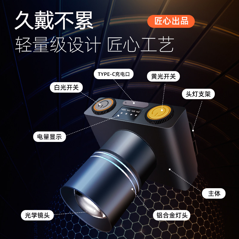黄光头灯 钓鱼夜钓白光照明高亮P50远射露营可充电铝合金户外强光