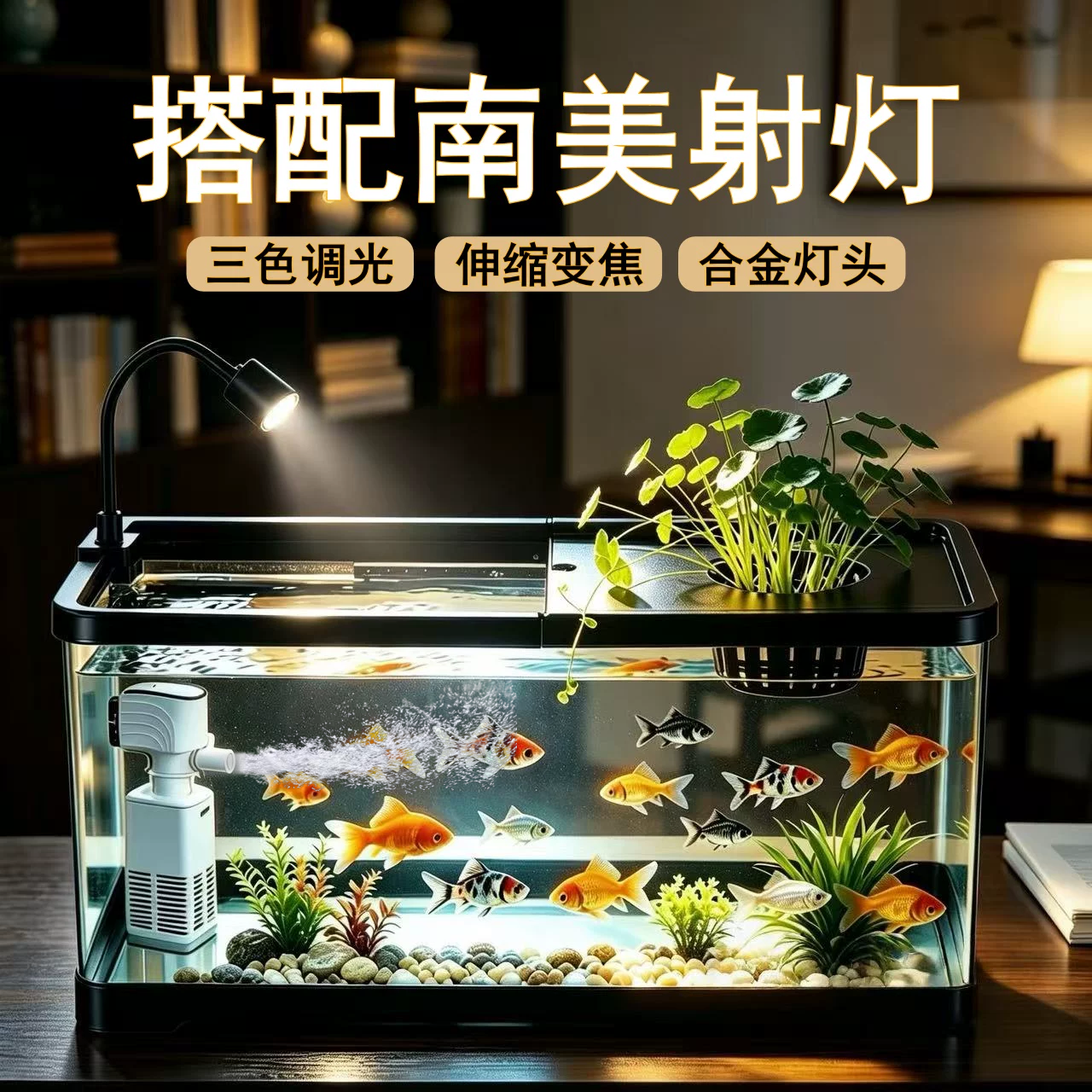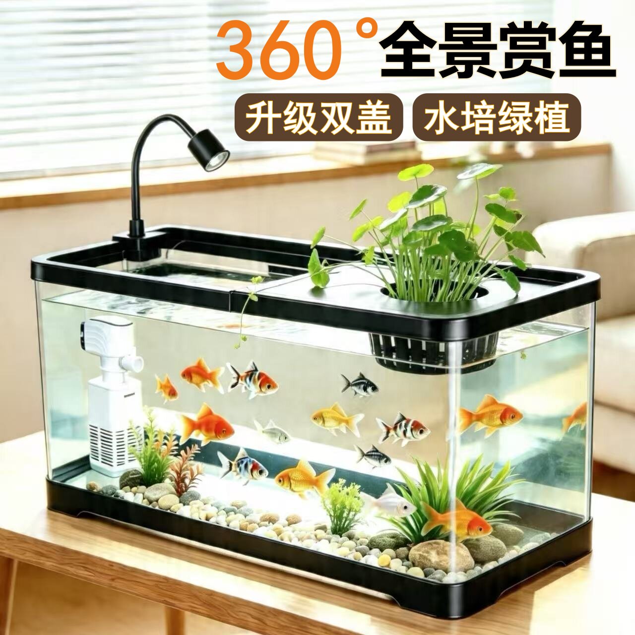 天初迪金鱼缸过滤制氧一体机小型玻璃桌面家用客厅免换水生态水族箱