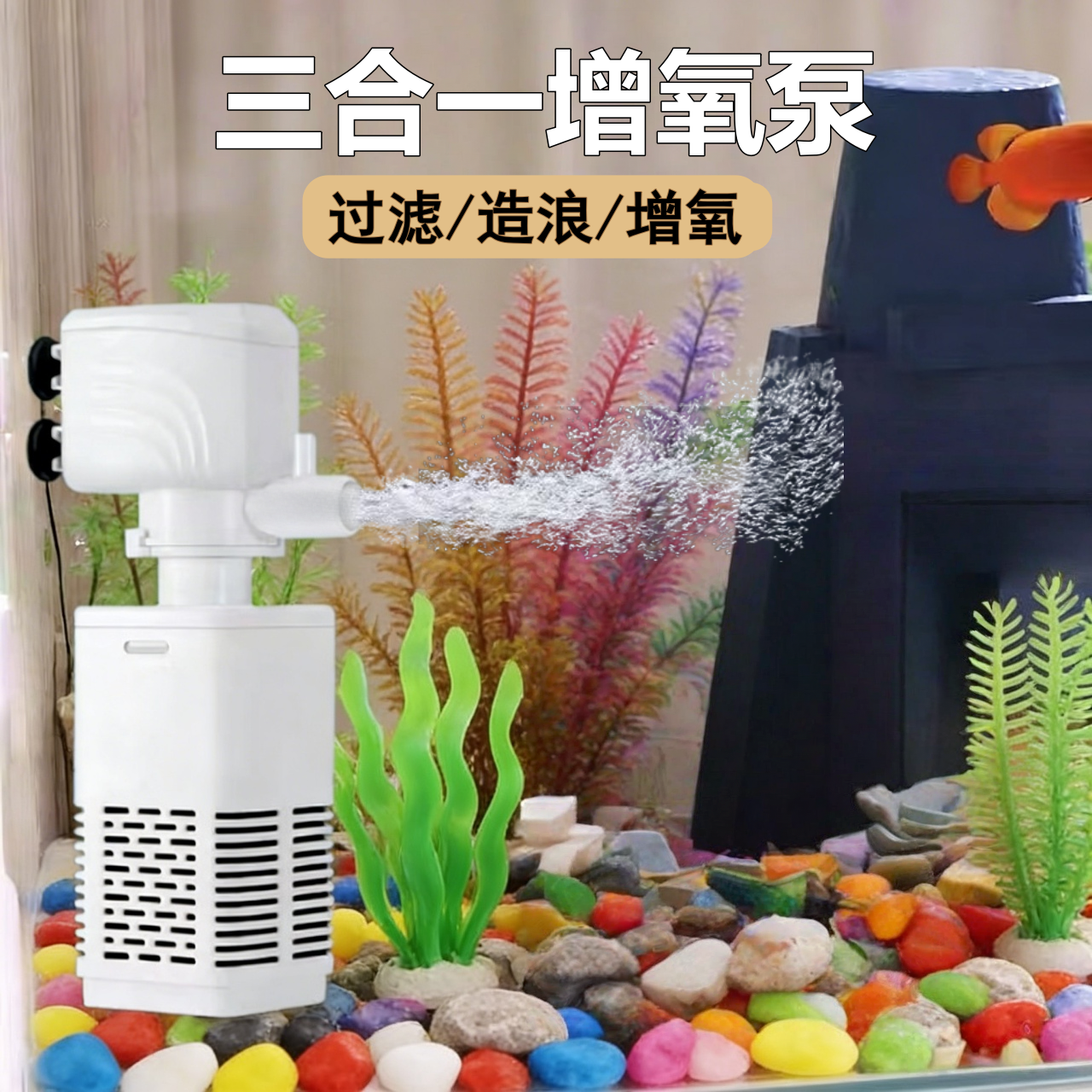 鱼缸过滤制氧一体机水泵净水循环三合一小型氧气泵水族箱家用静音