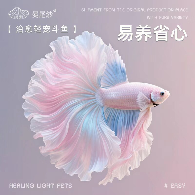曼尾纱泰国斗鱼,又称半月斗鱼,是一种极具观赏价值的热带淡水鱼。其最显著特征是宽大飘逸的扇形尾鳍,游动时如纱似雾,优雅动人。原产于泰国,适应力强,对水质要求不高,适合新手饲养。可在常温下生存(18-28℃),无需加热棒,被称为“冷水斗鱼”。性格活泼但具领地意识,建议单独饲养。杂食性,易喂食,抗病力强,成活率高。作为小型宠物鱼,曼尾纱斗鱼不仅色彩艳丽、形态优美,还兼具好养耐活的优点,是水族爱好者和居家装饰的理想选择,为生活增添灵动与美感。