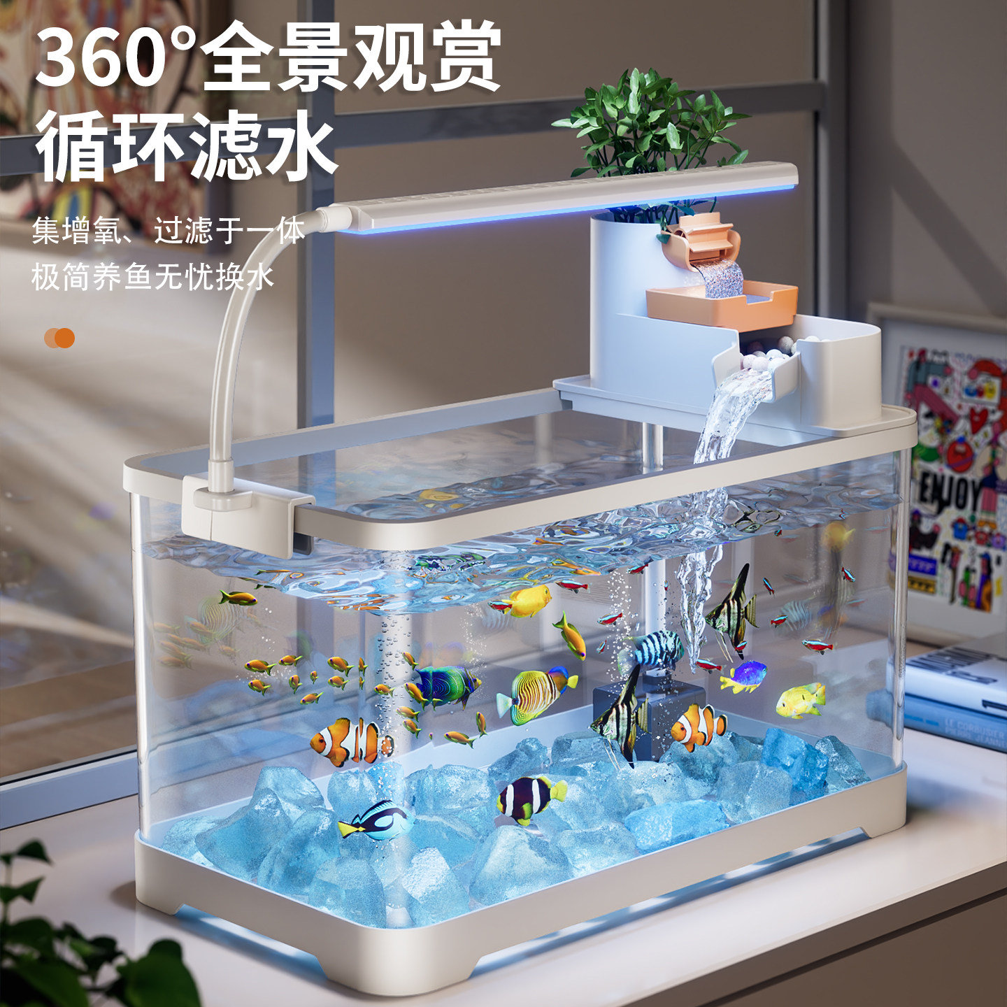 亚克力鱼缸客厅2026新款透明塑料防摔过滤制氧一体机小型客厅超白