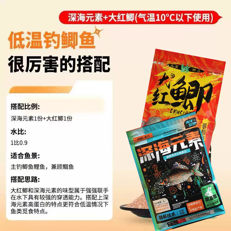 淘宝【官方10万+回购】化氏大红鲫水果藻元素钢弹2号赤炼钓鱼饵料套餐