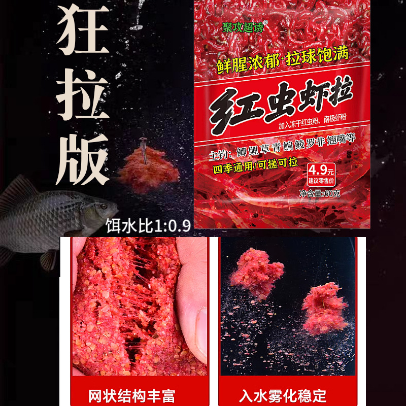 淘宝红虫虾拉钓鱼饵料野钓鲫鱼鲤鱼窝料专用四季拉饵开口一包搞定饵料