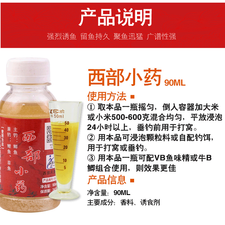 淘9.5元发3瓶西部小药水西部风正品诱食剂钓鱼饵料牛b鲫鲤泡米麦粒