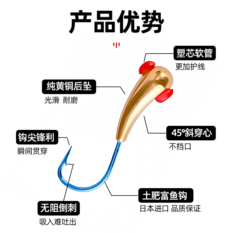 淘宝土肥富朝天钩陀螺牌青溪流铜头铜坠45度斜穿心传统冬钓钓鱼钩正品