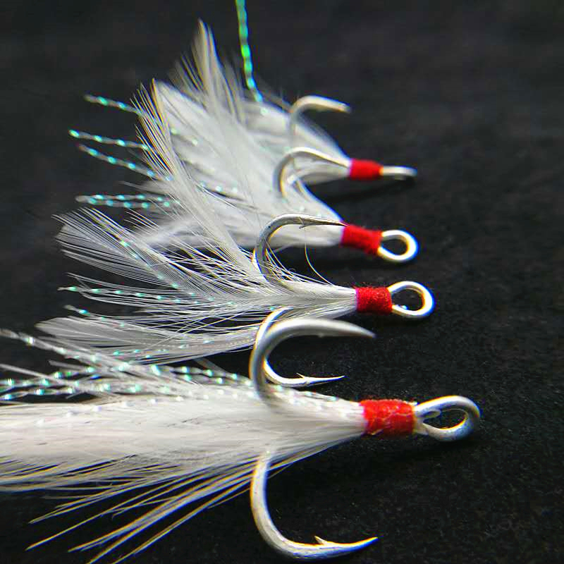 淘宝羽毛三本钩血槽加强拉力抗腐蚀铁板鱼钩海钓亮片钩假饵路亚钓鱼钩