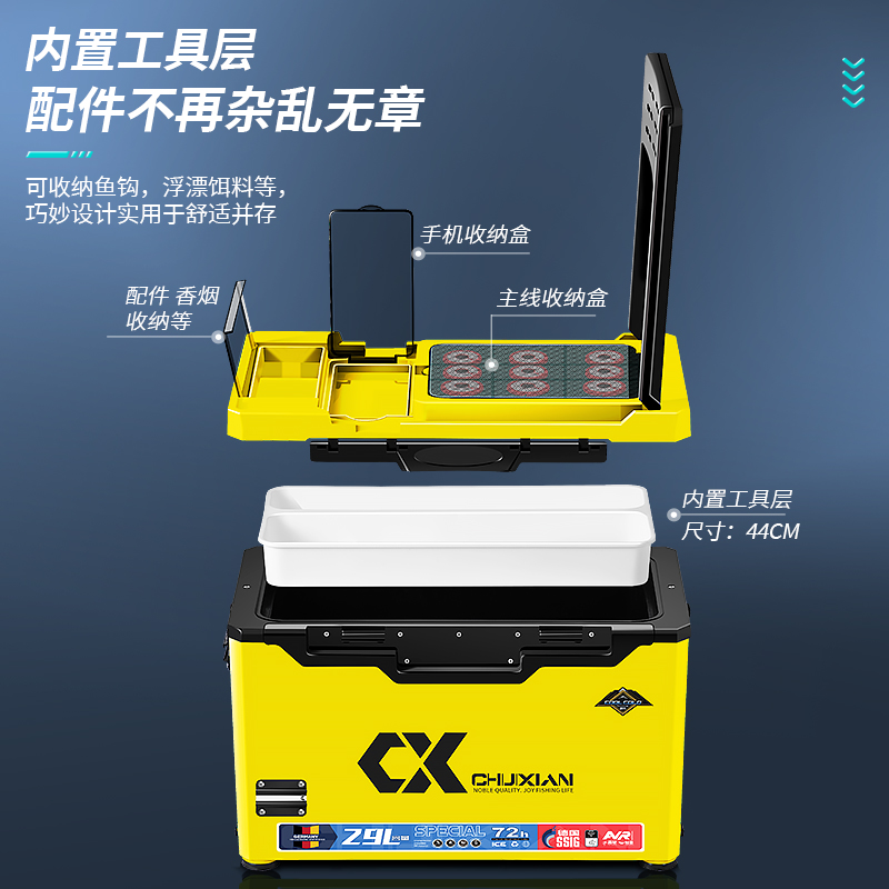 一帆精工26L防刮聚氨酯发泡钓箱29L钓鱼箱多功能升降超硬免安装