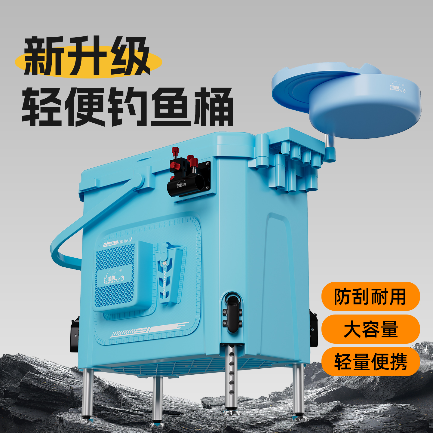 淘宝钓哈哈新款带升降轻量型钓桶大容量可坐钓鱼桶户外垂钓专用钓鱼箱